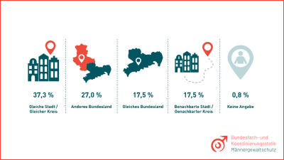 Die meisten Bewohner von Männerschutzeinrichtungen hatten im Berichtsjahr 2024 ihren Wohnsitz im selben oder angrenzenden Landkreis. Die BFKM fordert deshalb den flächendeckenden Ausbau des Männergewaltschutzsystems, da davon auszugehen ist, dass eine große Anzahl an Männern nicht erreicht wird. Zuletzt wurden zwar zwei neue Einrichtungen in Hamburg und Hannover eröffnet. Doch auch mit nun 17 Wohnungen und 55 Plätzen in nur sechs der 16 Bundesländer kann das Hilfesystem für Männer keinesfalls den Schutzanspruch für alle betroffenen Männer einlösen.